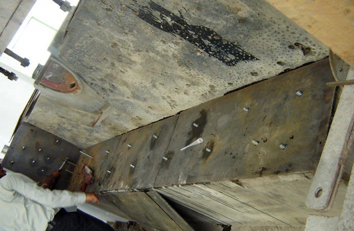 A strengthening method where steel plates are adhesively bonded or bolted to concrete members to increase load capacity and reduce deflection. Commonly used for beams, columns, and slabs in industrial and infrastructure projects.